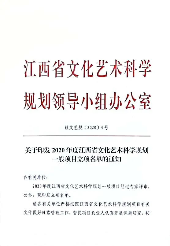 喜报|我院喜获1项2020年度江西省文化艺术科学规划项目立项