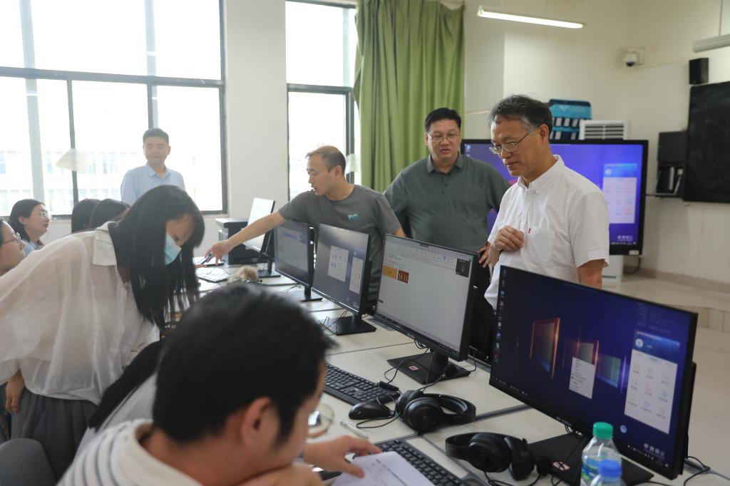 检查过程中,吴跃文细心询问了各项工作的准备情况,从宏观部署到细节考量,了解比赛设备、赛前安排、标识牌的张贴、赛项服务、后勤保障、安全保密等工作,指出一定要确保赛前准备工作万无一失。