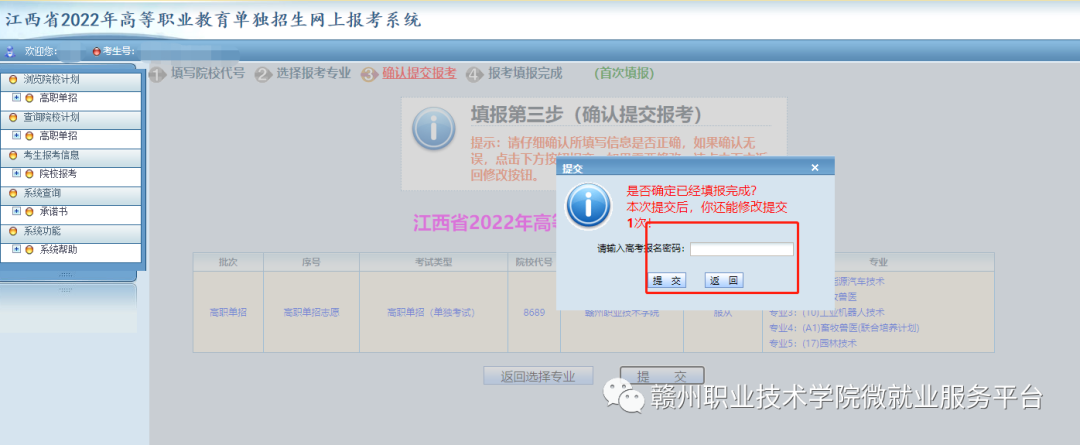 最后确认是否已经填报完成,输入高考报名密码,点击提交。