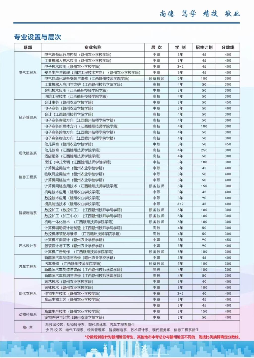 三、赣州农业学校电子技术应用,模具制造技术,作物生产技术这三个“3+2”专业的录取工作由省教育考试院统一组织,目前该工作尚未开展,请有意向报读这三个专业的同学及时关注江西省教育考试院的相关信息,志愿填报时间为8月上旬(https://mp.weixin.qq.com/s/Tf8CXgeJwAQiXu20vxOqgw)。现学校对这三个专业停止报名缴费,已报名缴费的同学也不一定可被录取,请已报名缴费这三个专业的同学注意根据自己的分数与意愿做好专业选择或调整,如无法录取,只能做退费或专业调整处理。