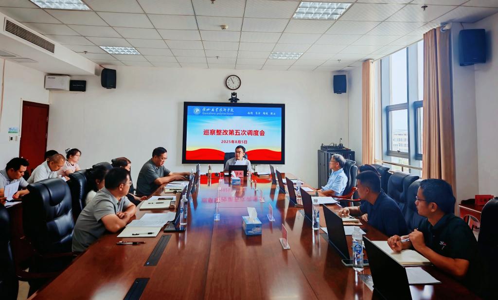 8月5日上午,学校在行知楼六楼会议室召开巡察整改第五次调度会,党委书记温学延主持会议并讲话,党委副书记、校长吴跃文等在家领导,以及各部门负责人、党总支书记参加会议。