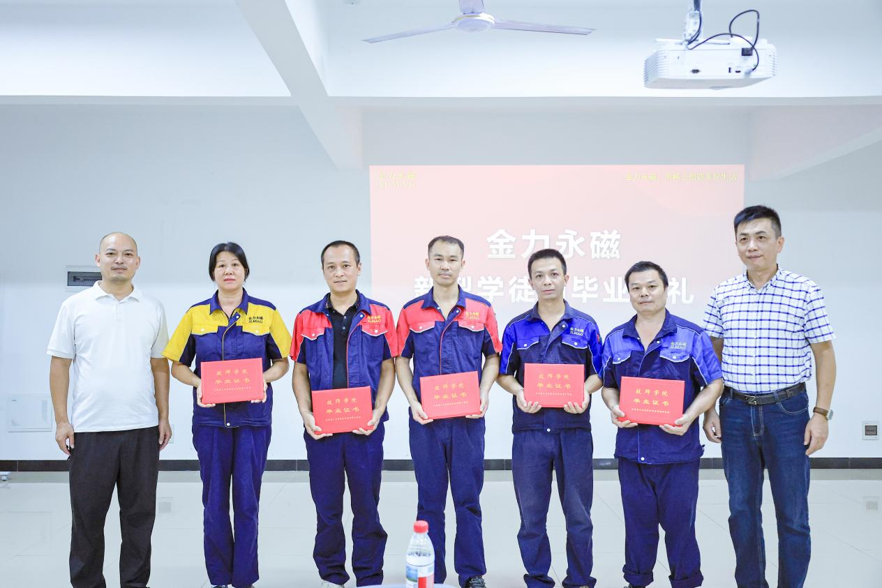 8月12日,学校与江西金力永磁科技股份有限公司(股票代码:300748)联合举办的“机械设备装配与自动化控制专业新型学徒制培训班结业典礼”在金力永磁科技股份有限公司会议室隆重举行,71名学员通过为期24个月的系统化“工学交替”培养。