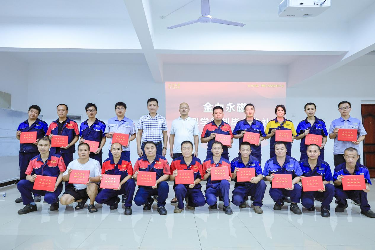本次培训是赣州市落实国家“职业教育产教融合赋能提升行动”的重要实践。项目围绕金力永磁核心岗位需求,由校企双方“共同开发课程体系”“共建实训基地”“互派双导师教学”(企业技术骨干+学校专业教师),涵盖稀土材料制备、磁材成型工艺、质量检测等关键技术模块。学员以“准员工”身份深入生产一线,在真实场景中锤炼技能,实现“入学即入职、结业即上岗”。
