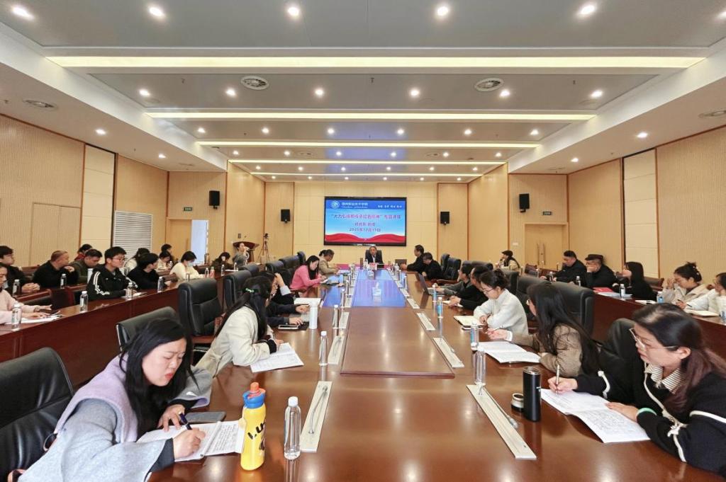 为深入贯彻落实立德树人根本任务,深度挖掘红色精神的丰富内涵与时代价值,筑牢学校思想政治教育根基,12月19日下午,学校在行知楼二楼会议室举办“大力弘扬和传承红色精神”专题讲座。讲座特邀中国社会科学院马克思主义研究院原党委书记、院长,第十三届全国政协委员,中国政策科学研究会副会长邓纯东教授主讲。