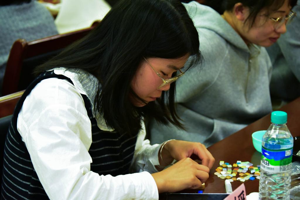 短暂的茶歇休息后,一场别开生面的减压创意活动——手工杯垫制作继续进行,辅导员们在动手实践中释放压力,感受创意乐趣。