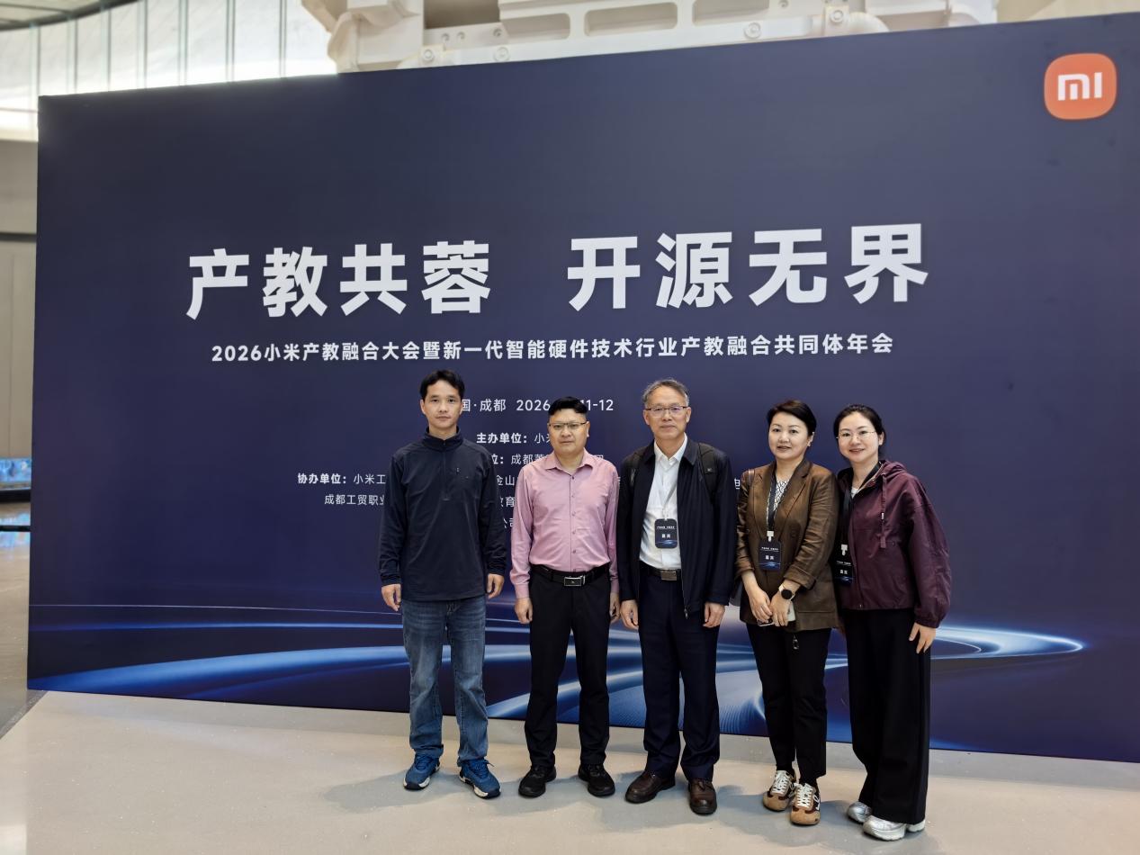 为深入贯彻国家职业教育产教融合政策,进一步深化校企协同育人机制,推动学校高质量发展,4月10日至12日,学校党委副书记、校长吴跃文率队赴四川成都,参加“2026小米产教融合大会暨新一代智能硬件技术行业产教融合共同体年会”。