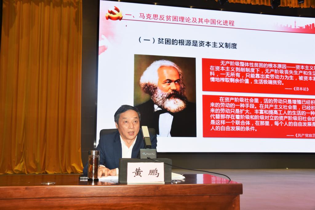 首先,黄鹏院长指出,从马克思主义反贫困理论来看,导致贫困的根本原因是资本主义制度,反贫困的路径在于推翻资本主义制度,建立共产主义制度。中国共产党自成立之日起,就将改变旧中国的社会性质和中国人民的悲惨命运扛在自己的肩上,带领人民推翻“三座大山”,进行“三大改造”,确立了我国的根本制度,即社会主义制度,并结合我国各个历史发展阶段的主要问题,科学总结出消除贫困是巩固工农联盟的需要,是社会主义的本质要求,是全面建成小康社会的需要,也是构建人类命运共同体的需要。