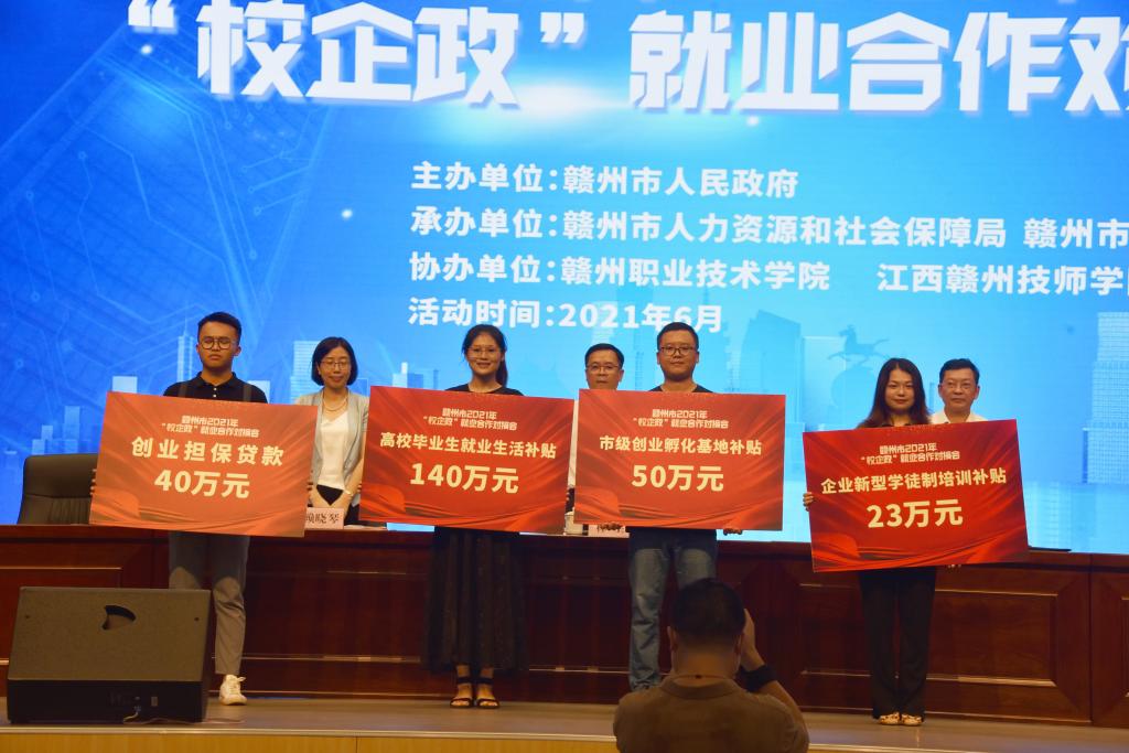 对接会上,江西理工大学、江西赣州技师学院、赣州农业学校等驻市高校、职业及技工院校代表向与会企业推介院校专业设置、与赣州市主导产业、首位产业急需人才专业对口毕业生的情况,介绍与企业的合作方向,国机智骏汽车有限公司等企业代表介绍企业对院校毕业生需求情况,优秀大学毕业生代表分享自己的在校学习及就业工作经历,部分院校及企业、园区现场签署校企合作协议,人社部门还向企业集中发放了就业补贴资金和创业担保贷款。