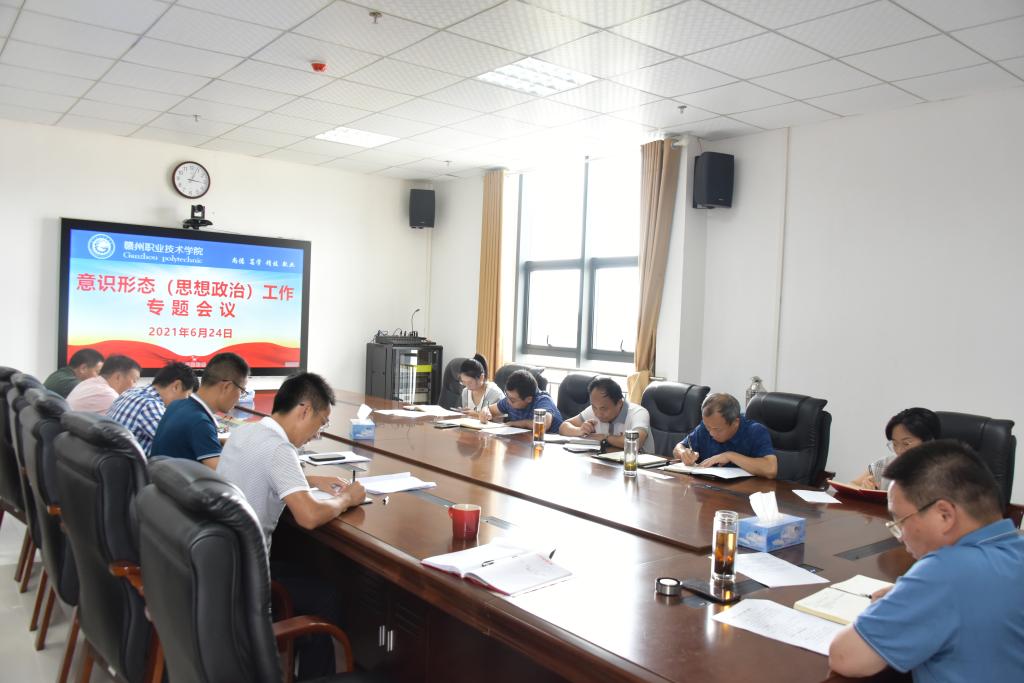 为进一步加强学院意识形态(思想政治)工作,6月24日下午,学院在行知楼六楼会议室召开意识形态(思想政治)工作专题会议,党委书记邹志华主持会议并讲话,党委委员、纪委书记赖昭忠,分管思想政治工作领导叶晓明,以及各党支部书记和党政办公室、组织人事处、宣传统战部等相关部门负责同志参加了会议。