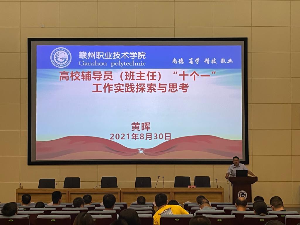 8月30日上午,学院邀请到了赣南师范大学经济与人文管理学院党委副书记黄晖教授,为大家带来了以“高校辅导员(班主任)十个一工作实践探索与思考”为主题的精彩授课。