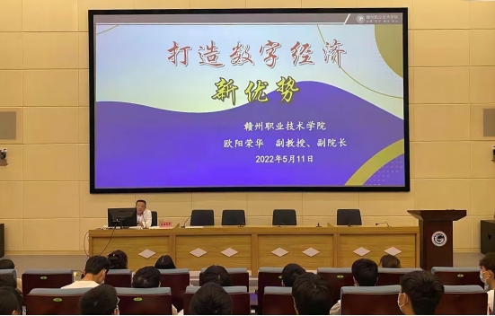 欧阳荣华指出,我国数字化创新持续迭代,新业态不断涌现,数字经济气象万千,适应数字时代的战略抉择,是构建新发展格局、建设现代化经济体系、构筑国家竞争新优势的强劲动力。在座的同学们一定要认清数字经济发展新趋势,找准数字经济发展新机遇,寻找自己人生出彩的机会,争取为国家、为地方经济社会发展作出贡献。