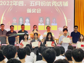 会上,宣读了2022年四月份、五月份优秀店铺表彰通报,给获奖学生颁发了荣誉证书和现金奖励。
