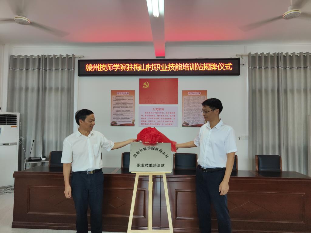 仪式上,赣州技师学院驻梅山村第一书记宣读了设立赣州技师学院驻梅山村职业技能培训站会议纪要,赣州技师学院、县人社局、梅山村村委会等相关负责人进行了致辞。
