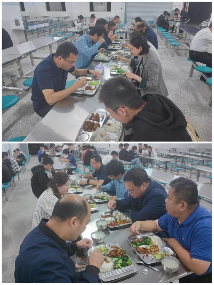 在学生食堂,温学延一行和同学们一起端着餐盘排队打饭,餐间,与同学们亲切交流,详细了解学生对食堂的饭菜质量、价格和品种的满意情况,征询同学们对食堂的意见和建议,鼓励同学们积极践行“文明餐厅”和“光盘行动”,营造良好的校园文化氛围。