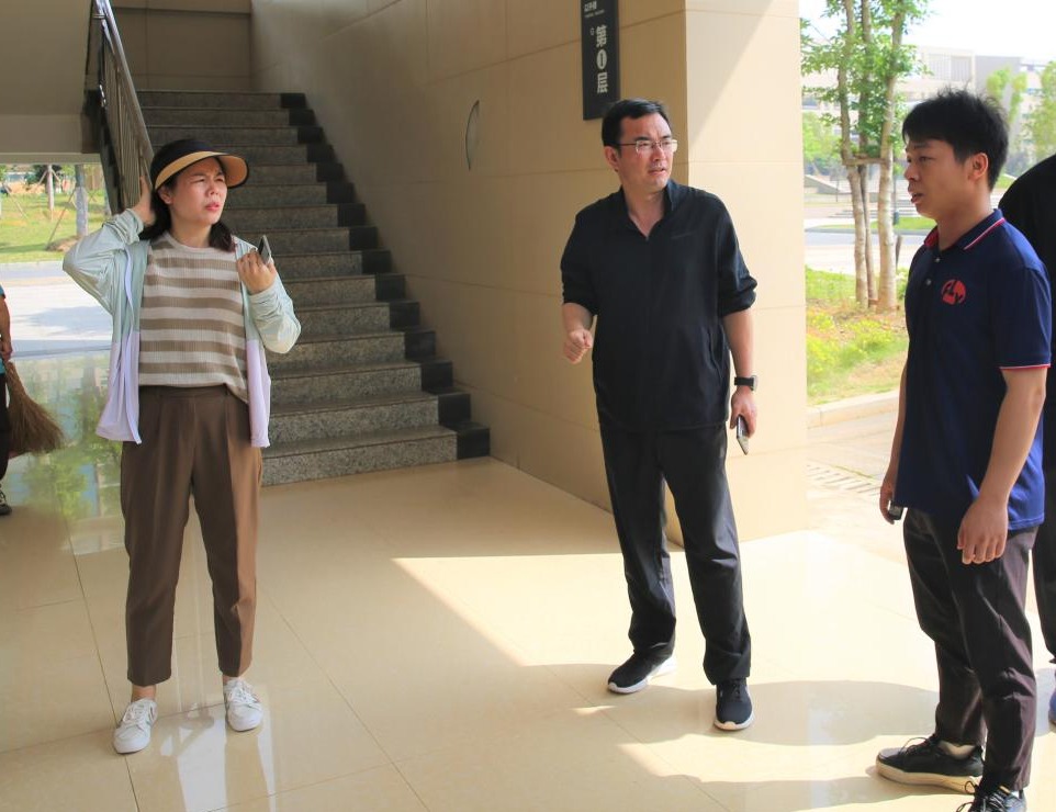 5月15日上午,学院党委书记温学延对职教活动周启动仪式筹备工作进行现场调度,党委副书记汤晓军,党委委员、宣传统战部曾卫平及党政办公室等相关人员陪同。