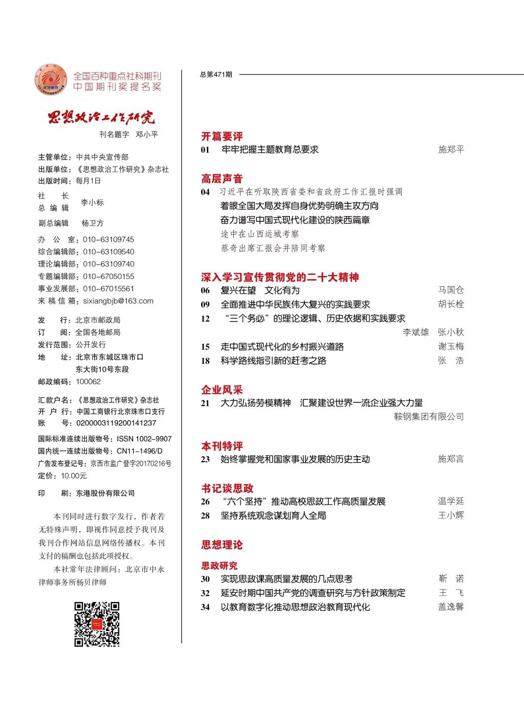 5月31日,学院党委书记温学延在《思想政治工作研究》2023年第6期发表署名文章《“六个坚持”推动高校思政工作高质量发展》,文章从坚持铸魂育人、党的全面领导、理论与实践结合、三全育人、拓展内涵外延、讲好思政故事等六个方面入手,对如何做好高校思政工作进行了介绍。