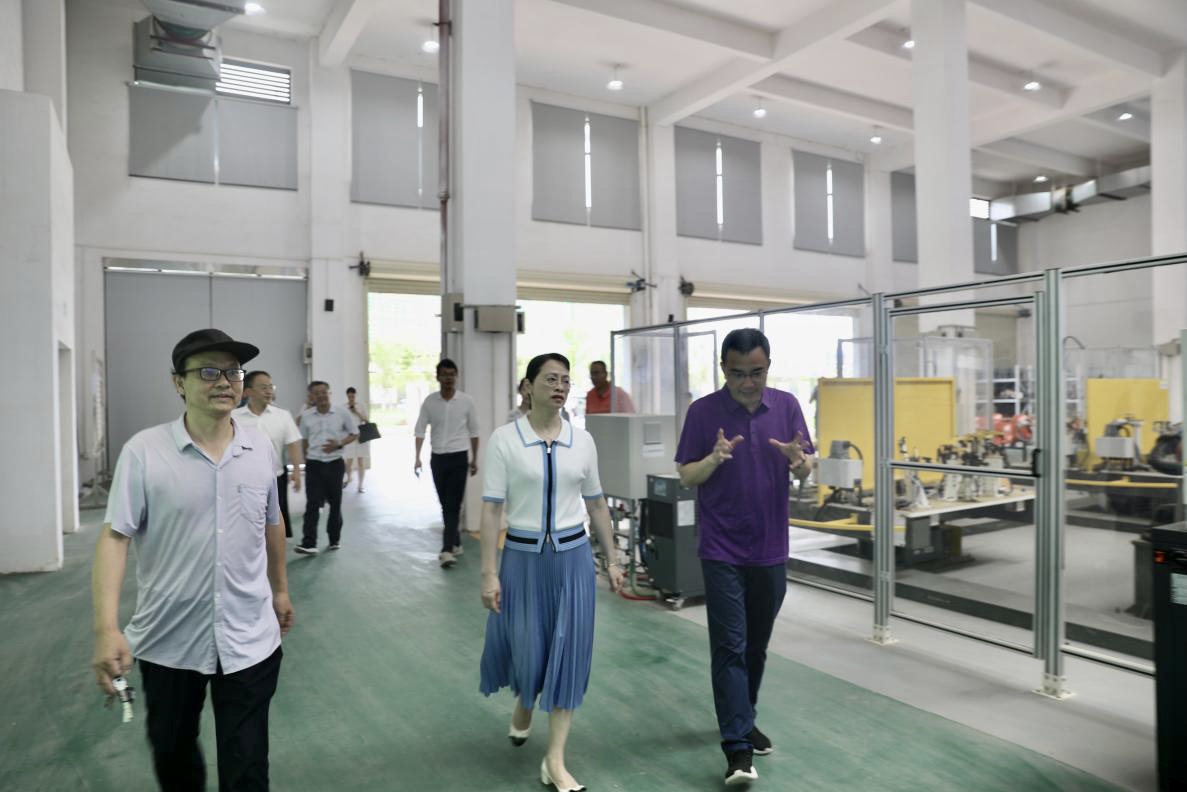 陈黎一行深入教学楼,对教学设备运行情况、教学环境等进行了全面细致的了解。赖健健对全南产业学院关于产教融合的发展现状和建设计划进行了交流汇报。陈黎对全南产业学院产教融合取得的显著成效给予高度赞扬,她表示,在今后的工作中,要持续深化、实化、细化产教融合,结合经济社会发展实际,高起点谋划,高质量推动产教融合健康有序发展,进一步推动“产”“教”相互贯通。