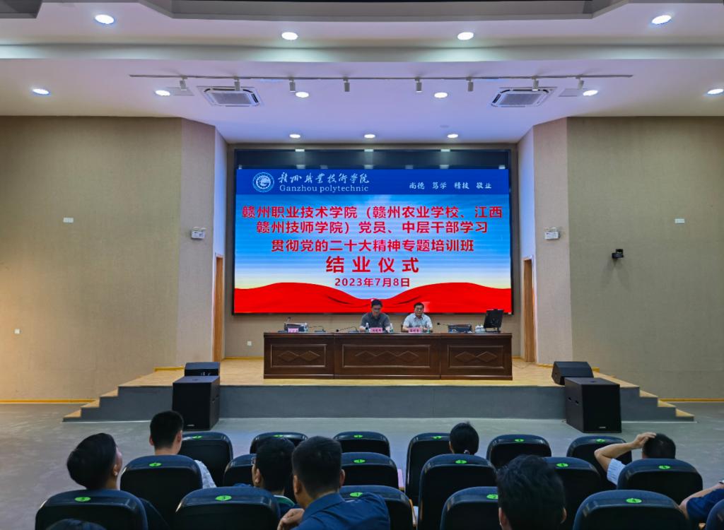 7月8日,学院2023年度党员、中层干部学习贯彻党的二十大精神专题培训班结业仪式在公共实训基地二楼报告厅举行,学院党委副书记汤晓军出席会议并讲话,会议由党委委员、组织人事处处长温继荣主持。