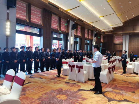 据悉,世界客属第32届恳亲大会赣职青年志愿者服务队由现代服务系牵头,严格贯彻优中选优的原则,严把志愿者选拔服务理念关、专业技能关和身心素质关,力争做到把政治表现好、专业技能强、形象气质佳、综合素质好的学生招募到志愿者队伍中,通过层层选拔最终确定92名学生参与本次世客会志愿者活动。世客会期间,赣职青年志愿者以良好的礼节礼貌、仪容仪表在江西龙南老屋树下酒店欢迎晚宴现场开展志愿服务,为世客会顺利召开提供服务保障。志愿者们用新时代青年人的担当与魄力,热情与魅力,为世客会的成功圆满举办提供了有温度、有力度的服务保障,用最热情、最专业的服务,向全世界展示当代赣南客家人的风采。