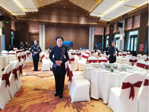 学院现代服务系主任曾海鹏、副主任张诗咏,陈丽嫔、贺娇、刘琳等老师带领92名学生参与了本次世客会志愿服务中餐厅服务的开发设计和世客会龙南老屋树下酒店欢迎晚宴志愿者服务工作。