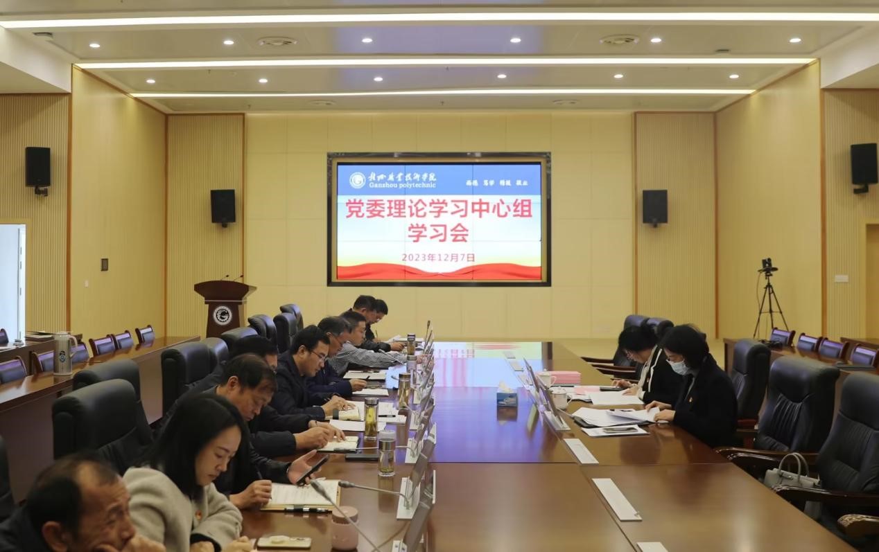 12月7日上午,学院在行知楼二楼会议室召开党委理论学习中心组学习会,市委教育工委委员、市教育局副局长赖晓琴,市教育局职成科负责人利志娟巡听指导,学院党委书记温学延主持会议并讲话,党委副书记、院长吴跃文等在家党委班子成员、院领导和相关职能部门负责同志参加会议。