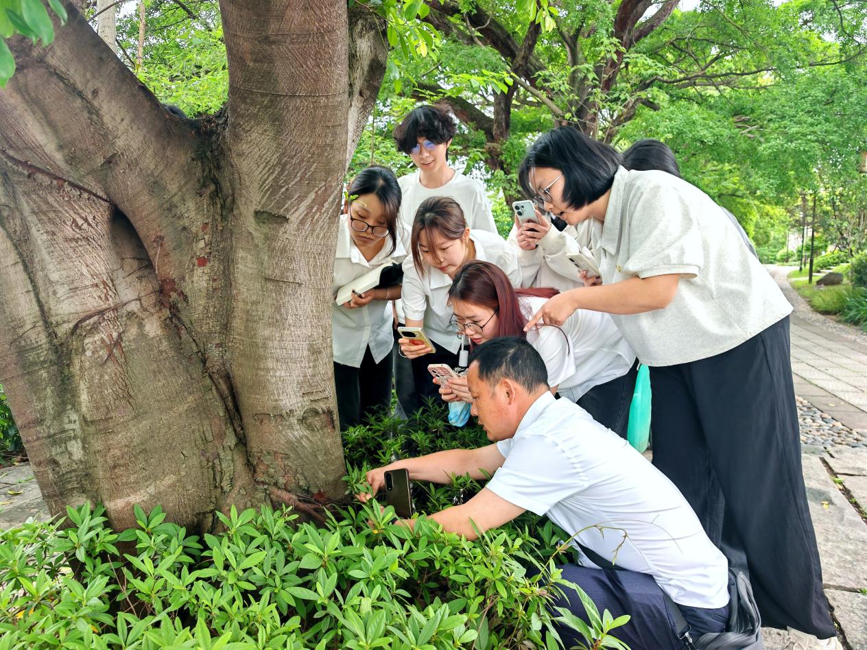 随后,校企党员共同开展党员技术服务微行动。在古镇景观区,党员教师现场指导学生识别园林植物常见病虫害,讲解防治技术要点,开展植株健康排查,以实际行动践行党员使命,把专业技术送到生产一线。