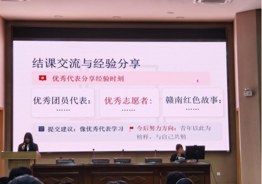 为深化教育效果,团课特别设置了红色故事分享环节。谢唐乐同学讲述了“半条被子”与“八子参军”的赣南红色经典故事,带领团员感悟革命战争年代党群一心、无私奉献的崇高精神。这既是一次深刻的党性教育熏陶,也是学院样板党支部建设中“红色基因传承”活动向团员青年的有效延伸,激励大家从红色历史中汲取前行力量,坚定“强国有我”的信念。