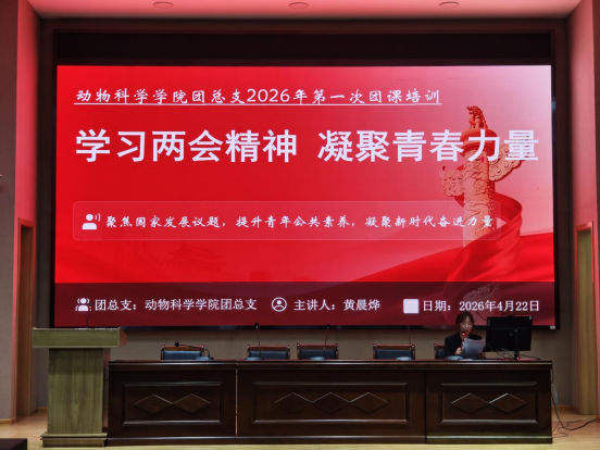 为深入贯彻落实立德树人根本任务,动物科学学院党总支坚持“党建带团建,团建促党建”的工作方针,于4月22日指导团总支举办了“学习两会精神,凝聚青春力量”主题团课。作为省级党建工作标杆院系培育单位,此次活动旨在通过高质量党建引领青年思想,将200余名团员青年的成长自觉融入国家发展大局。