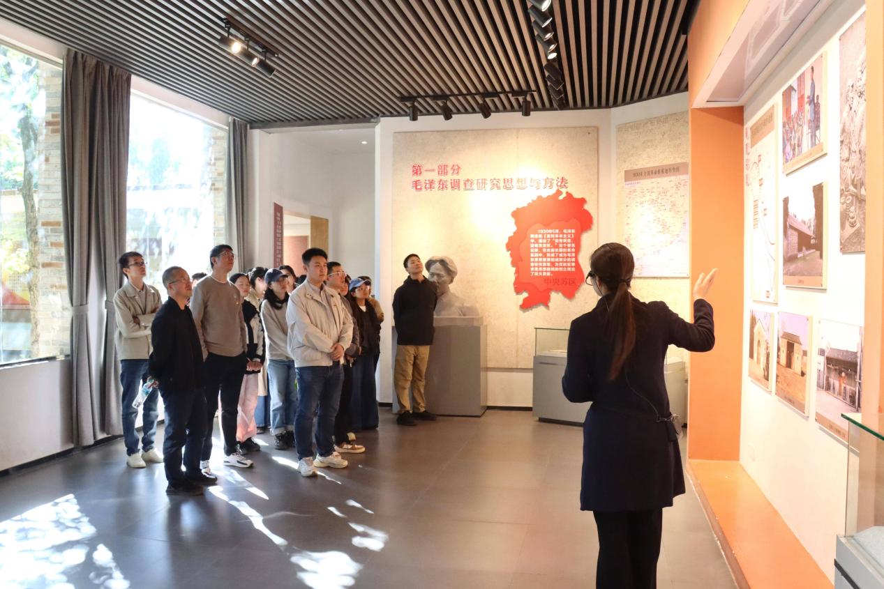 11月30日下午,全体成员抵达长冈乡调查纪念馆。讲解员耐心介绍了毛泽东同志当年在长冈乡进行深入社会调查的历史,带领大家重温毛泽东《兴国调查》背后的历史故事,深刻感悟“没有调查就没有发言权”的深刻内涵。讲解过程中,讲解员还与现场党员亲切互动,唱了具有地方特色的“兴国山歌”,赢得了阵阵热烈掌声。此番互动体验,不仅活跃了现场氛围,更以生动形式加深了大家对调查研究传统的理解。
