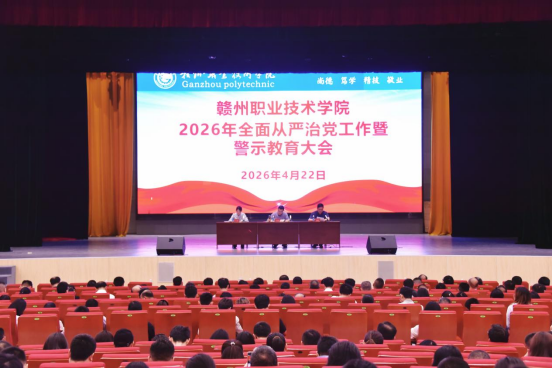 4月22日下午,学校2026年全面从严治党工作暨警示教育大会在行知楼一楼学术报告厅举行,党委书记温学延出席并讲话,在家领导班子成员和全校教职工参会,会议由党委副书记汤晓军主持。