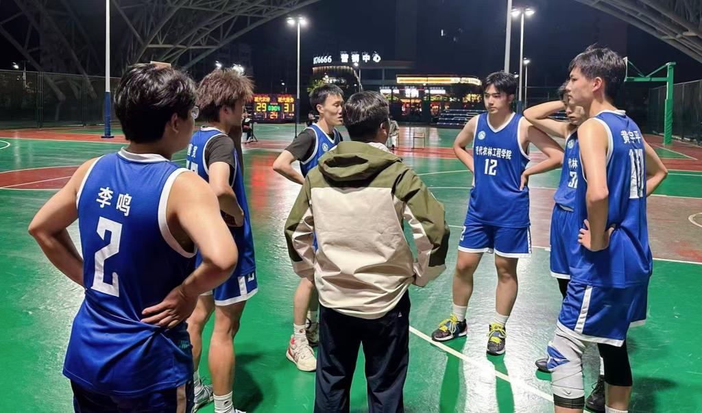 22日,现代农林工程学院与现代服务学院展开对决。在赛前一个小时,队员们就已齐聚风雨球场,通过传球与跑动积极热身,激活身体状态;教练则在旁叮嘱战术细节,全力为比赛做准备。比赛伊始,两队迅速进入状态,火力全开。赛场上队员们穿插传球,屡现精彩抢断与快速上篮,现代农林工程学院最终仅以三分之差遗憾告负。但无论结果如何,这份在赛场上挥洒的热血、收获的友谊,早已成为他们青春里最珍贵的记忆。