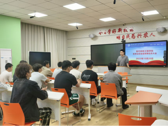 为丰富校园文化生活、锤炼学生身体素质、锻造团队协作精神,迎接即将到来的秋季运动会,现代农林工程学院于10月20日开展秋季运动会篮球赛动员会。学院党总支书记巫健出席动员会,并为队员们加油鼓劲,既激励他们在赛场上秀出风格,赛出水平,争创优异成绩,同时也着重叮嘱全体队员强化安全意识,贯彻“友谊第一、比赛第二”的体育精神,以良好风貌投入赛事。