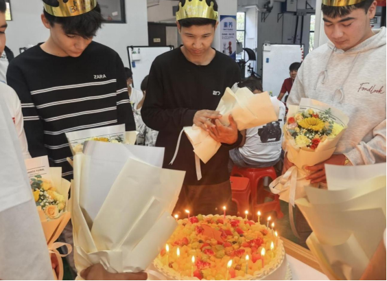 随后,精彩的庆生环节将活动推向高潮。汽车工程学院的同学们精心准备了趣味互动游戏,欢声笑语在会场回荡。当象征着祝福与希望的生日蛋糕被推出,烛光摇曳,两校师生一同唱响生日歌。温暖的歌声承载着深厚的情谊,流淌在每个人心间。寿星们面对烛光,默默许下对未来的美好期许,脸上洋溢着幸福与感动。
