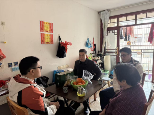 家访过程中,家访团队一行不仅深入了解学生的家庭环境、实际困难与成长需求,还结合学习贯彻党的教育方针,向家长宣传学校育人理念和帮扶政策。在谈话时注重思想引导与心理支持相结合,将组织关怀融入日常交流,帮助家长树立正确的教育观、成才观,鼓励学生积极面对困难、坚定成长信心。