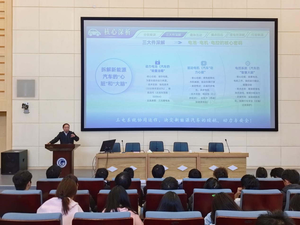 此次讲座的成功举办,既是汽车工程学院对“一院一品”特色育人项目的深入实践,也是深化“党建+思政+专业”融合育人的重要举措,为学生搭建了新能源汽车理论联系实际的学习平台,有效激发了专业学习热情与创新实践动力。