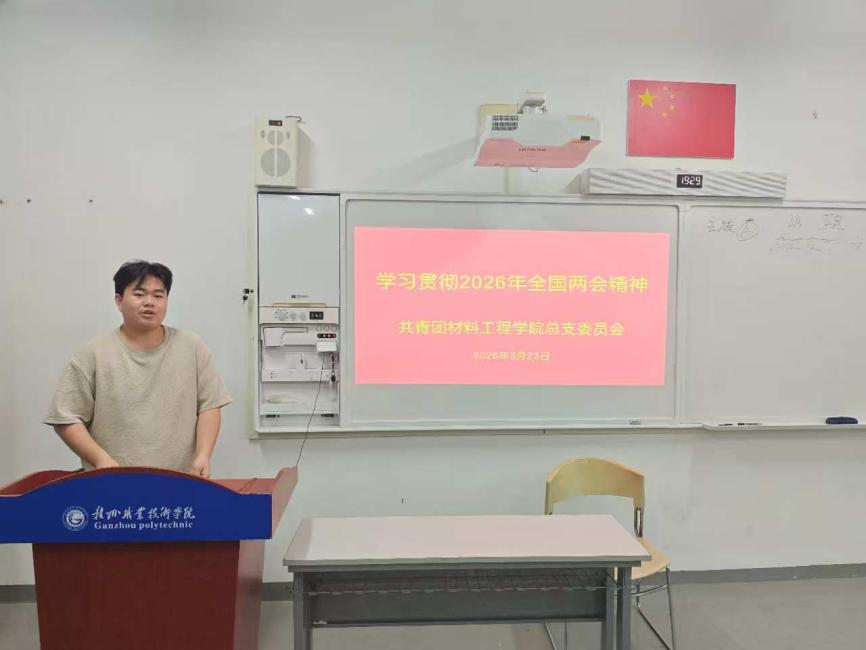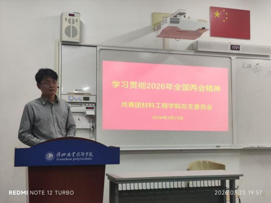 为深入学习贯彻2026年全国两会精神,引导青年学生把思想和行动统一到国家发展大局上来,切实增强责任感与使命感,3月23日,材料工程学院团总支组织学生学习2026年全国两会精神。材料工程学院师生代表参加学习,活动由材料工程学院团总支副书记李顺主持。