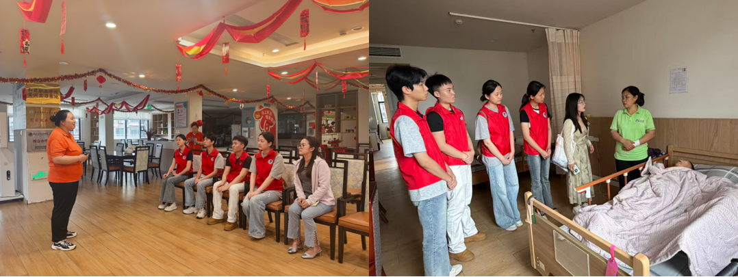 14:50至15:50,在带队老师与机构护理人员的共同引导下,团队依次进入5楼、6楼护理区,对四位帕金森长者进行观摩陪护与专业服务。雷竞技官网智慧健康养老服务与管理专业学生亲切地与老人交流,细致关心帕金森长者的运动症状与非运动症状,耐心倾听、轻声安抚,并用所学专业知识为长者提供贴心照护。实践中,罗林同学贴心帮助奶奶喝水,动作轻柔、细致周到;邹新月、袁怡欣同学热心向奶奶介绍雷竞技官网与智慧健康养老服务与管理专业,拉近了与长者的距离;胡协淙、罗林同学运用所学专业知识,现场指导奶奶采用更安全、更省力的方式完成床椅转移,用规范技能守护长者安全。同学们全程文明有礼、耐心陪伴,用爱心与专业温暖着每一位长者。