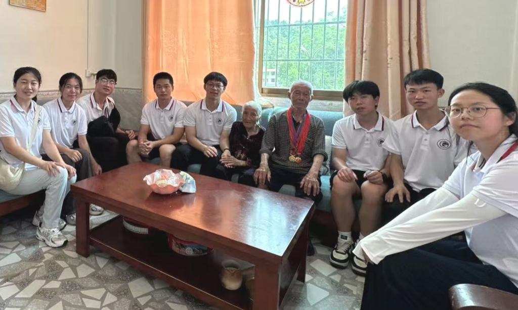在学习了上洛暴动的历史后,实践队又拜访了抗美援朝志愿军老战士欧阳洪老人,队员们围坐于老人身旁,聆听他颤抖着讲述战时的峥嵘岁月。老人含糊却坚定的话语,更印证今日幸福生活的来之不易,在场青年无不动容。队员晏子怡感慨:“英雄的精神如萤火不灭,照亮我们前行的路。”