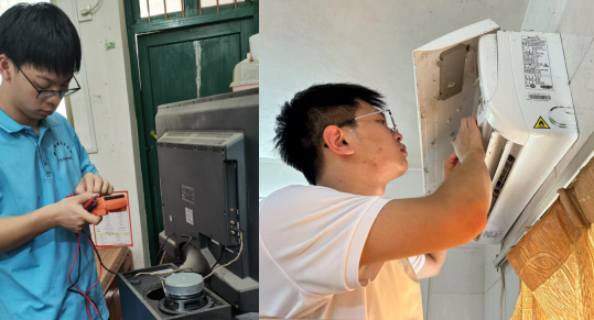 针对这一情况,实践队充分发挥机电类专业的技术优势,组建起“萤火家电义诊”志愿服务队。队员们准备好万用表、空调专用清洗剂、电烙铁等专业维修工具,根据村干部的登记情况开展上门服务。每到一户,他们都耐心排查故障,细致拆解检查部件,凭借扎实的专业知识排查线路问题、清洁内部污渍,有条不紊地开展维护维修工作。短短两天时间,服务队不仅成功让17台“带病”电器重焕生机,还主动前往村里的新时代文明实践站,对办公用电脑、打印机、投影仪等设备进行全面调试和维护。闷热夏日里重启的凉风,不仅为村民们送去了实实在在的便利,更让大家感受到了舒心与温暖。
