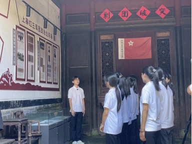 高举鲜艳的五星红旗,团队走进上寨红三军团旧址。师生们通过参观历史文物、聆听现场讲解,深刻追忆了红三军团艰苦卓绝的革命历程与英勇无畏的斗争精神。讲解员为团队生动介绍了为革命事业牺牲的巾帼烈士何桃英的故事。团队仿佛置身于那段艰苦岁月,对革命先辈的智慧与勇气有了更直观、更深刻的感悟,感受到了历经岁月沉淀依旧滚烫的信仰力量。