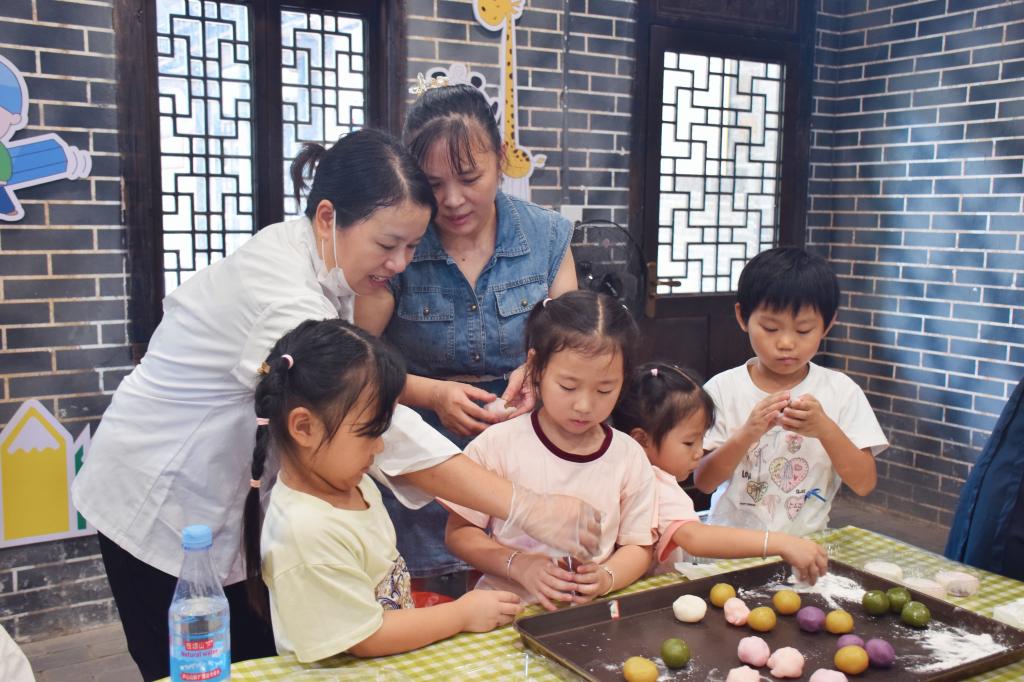 孩子们在师生的共同指导下兴致高涨,纷纷动手创作专属月饼:有的选择清新的抹茶味冰皮搭配豆沙馅,有的尝试将蛋黄碎融入莲蓉馅,一个个造型精致、色彩明快的冰皮月饼相继成型。活动现场不仅飘散着食材的清香,更充满欢声笑语,孩子们捧着亲手制作的月饼,既感受到传统节日的温情,也对“劳动创造美好”有了直观体会。