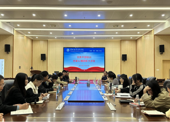 为进一步推进学校与深圳信息职业技术大学深度合作走实走深,提升学校党务干部履职能力,强化学校基层党组织建设水平,11月14日上午,学校在行知楼二楼会议室举办党务干部培训暨第42期赣职大讲堂。本次培训聚焦“标杆院系建设、样板党支部创建、组织员工作实务”三大主题,邀请深圳信息职业技术大学数字媒体学院党委书记陈登峰、数字媒体技术教工党支部书记韩丽屏、数字媒体学院组织员王艺婷为大家作专题交流分享,学校各党(总)支部全体支委、组织部全体人员共计100余人参与培训。
