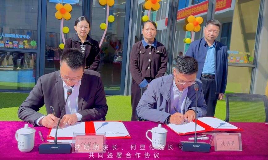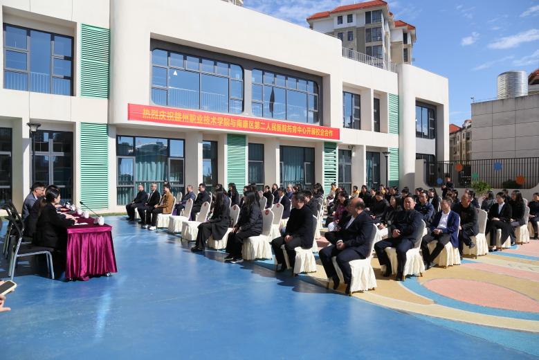 仪式在庄严的氛围中拉开帷幕。扶明明致辞,他表示学院开设婴幼儿托育服务与管理特色专业,此次与南康区第二人民医院托育中心合作,将搭建“校-企-岗”协同育人桥梁,培养复合型托育人才。