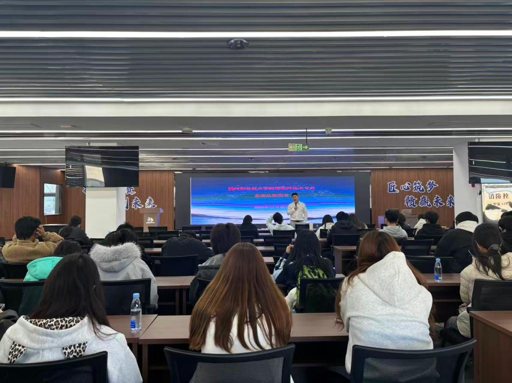参观环节结束后,活动转入专题讲座阶段。基地资深讲师以“物联网应用技术专业企业认知实习”为主题,围绕物联网行业发展趋势、技术迭代脉络,结合基地成熟的实训体系与真实产业应用案例,为同学们系统解析了行业发展前景与高素质人才需求标准。互动交流环节中,党员教师与企业嘉宾共同为同学们答疑解惑,针对专业学习规划、技能提升路径、就业发展方向等热点问题进行深度解读,现场氛围热烈融洽、交流成效显著。