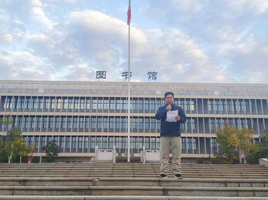 仪式最后,材料工程学院党总支书记刘书友发表讲话。他聚焦党的二十届四中全会精神,围绕“会议核心要义解读”和“教育实践落地路径”两个维度,带领全体师生进行集体学习。他强调,要将会议精神融入育人全过程,引导青年学子坚定理想信念、练就过硬本领,将个人发展融入国家发展大局,努力成长为担当民族复兴大任的时代新人。