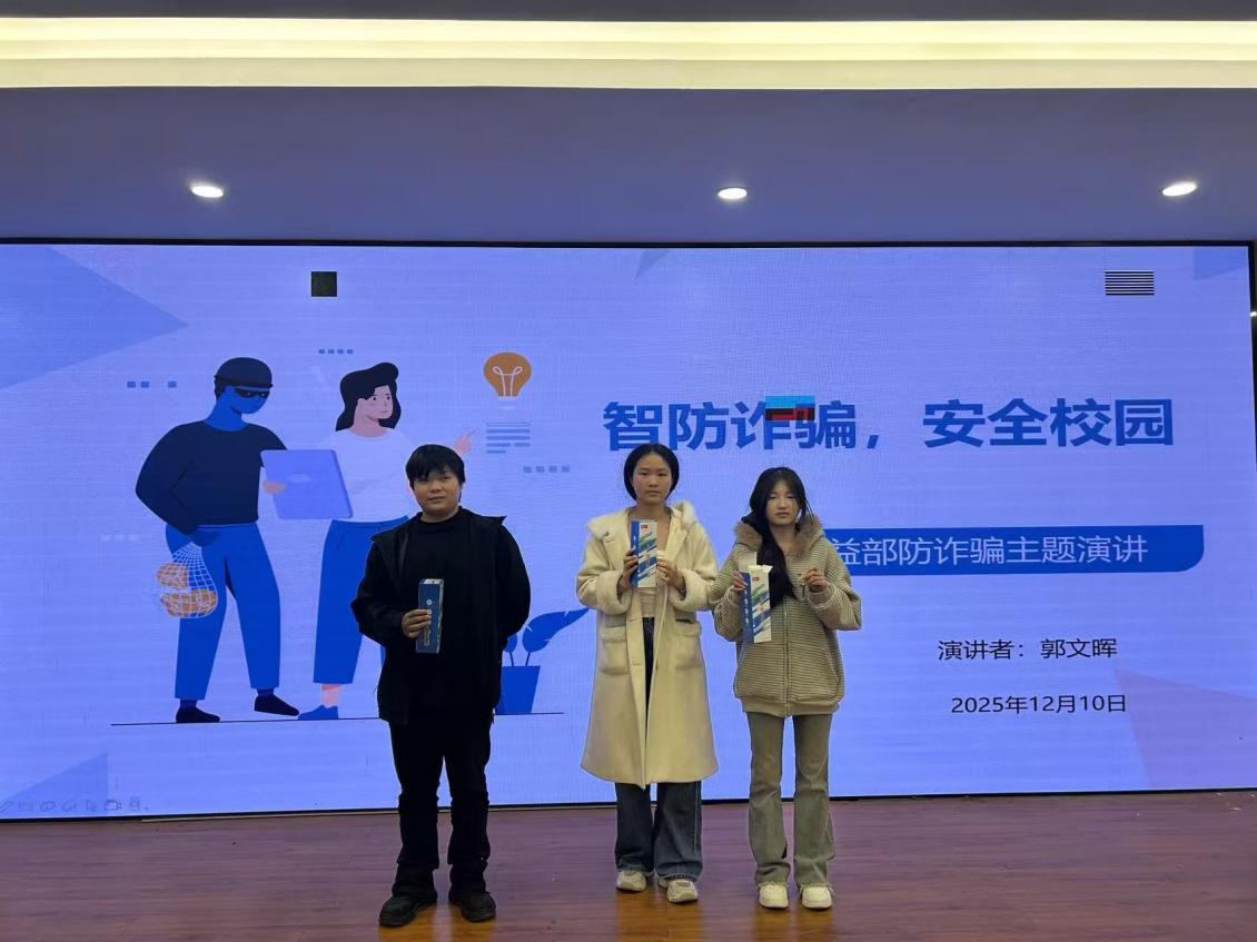 随着信息技术的快速发展,新型诈骗手段层出不穷,大学生群体逐渐成为诈骗分子的重要目标。为增强学生防诈意识,筑牢校园安全防线,12月10日,现代农林工程学院自律委员会权益部在毕昇楼301教室成功举办了以“智防诈骗,安全校园”为主题的反诈宣传活动。全院80余名学生齐聚一堂,共同参与了这场兼具警示性与教育性的安全知识普及活动,现场学习氛围浓厚,互动反响热烈。