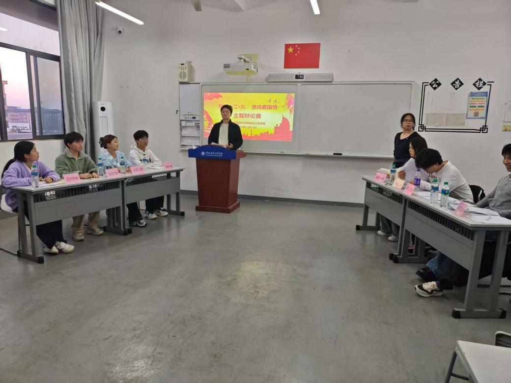 辩论赛由肖舒菱同学主持,流程顺畅,环节紧凑。材料工程学院廖瑞姬老师为比赛作开场致辞,他强调了在新时代重温“一二·九”运动精神的重要意义,并鼓励同学们通过辩论这一形式,深入思考爱国主义的内涵与实践路径。现场评委老师从辩题理解、论证结构、语言表达、团队协作及临场反应等多个维度对双方表现进行了认真评审与打分。