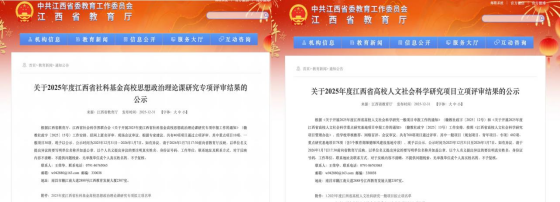 近日,江西省教育厅公示2025年度江西省社科基金高校思想政治理论课研究专项及高校人文社会科学研究项目拟立项名单,学校多名青年教师主持申报的课题凭借扎实的研究基础、创新的研究视角成功获批,其中马克思主义学院3项,经济管理学院1项。立项数量与质量均实现稳步提升,彰显了学校在人文社科领域的科研实力与育人担当。