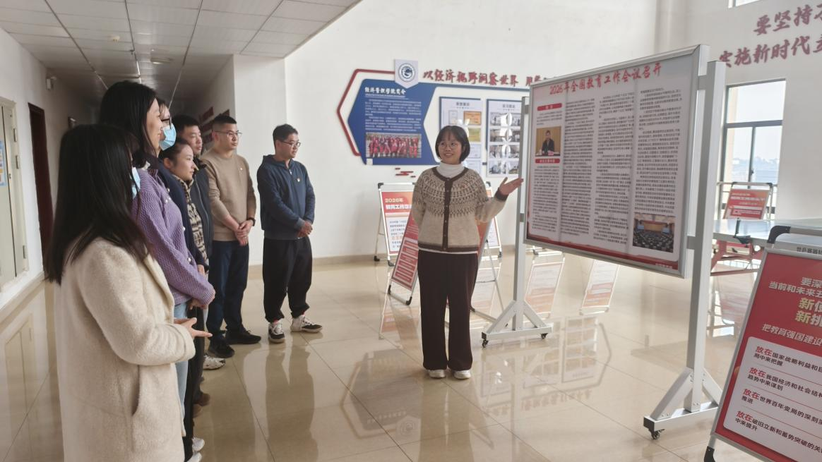 经济管理学院党总支于1月9日至26日组织开展了学习2026年全国教育工作会议精神系列活动。活动采取“专题学习会+专题学习区观摩”相结合的形式,扎实推动会议精神在全院师生中学深悟透、落地落实。