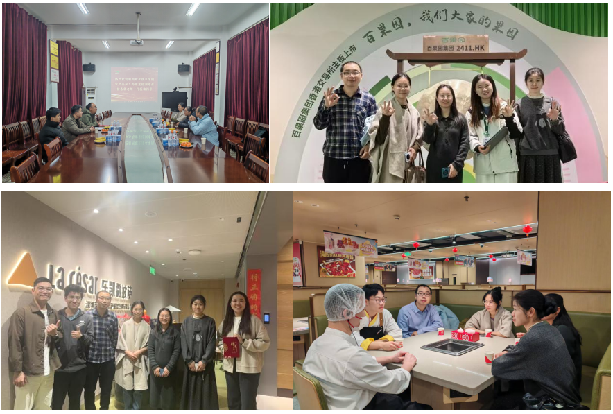 第三小组南下广东,先后参访了华农恒青科技股份有限公司、深圳百果园实业(集团)股份有限公司、深圳市乐凯撒比萨餐饮管理有限公司、广东山蕃美食产业链管理有限公司等业内领先企业,学习了沿海发达地区在食品供应链管理、品牌运营、新品研发及高标准质量管控方面的先进经验。此外,第三小组专程赴广州海底捞火锅(萝岗奥园店),回访在此实习的学生,详细了解学生的工作、生活情况,传递学校的关怀,并听取了企业对实习生综合素质的反馈。